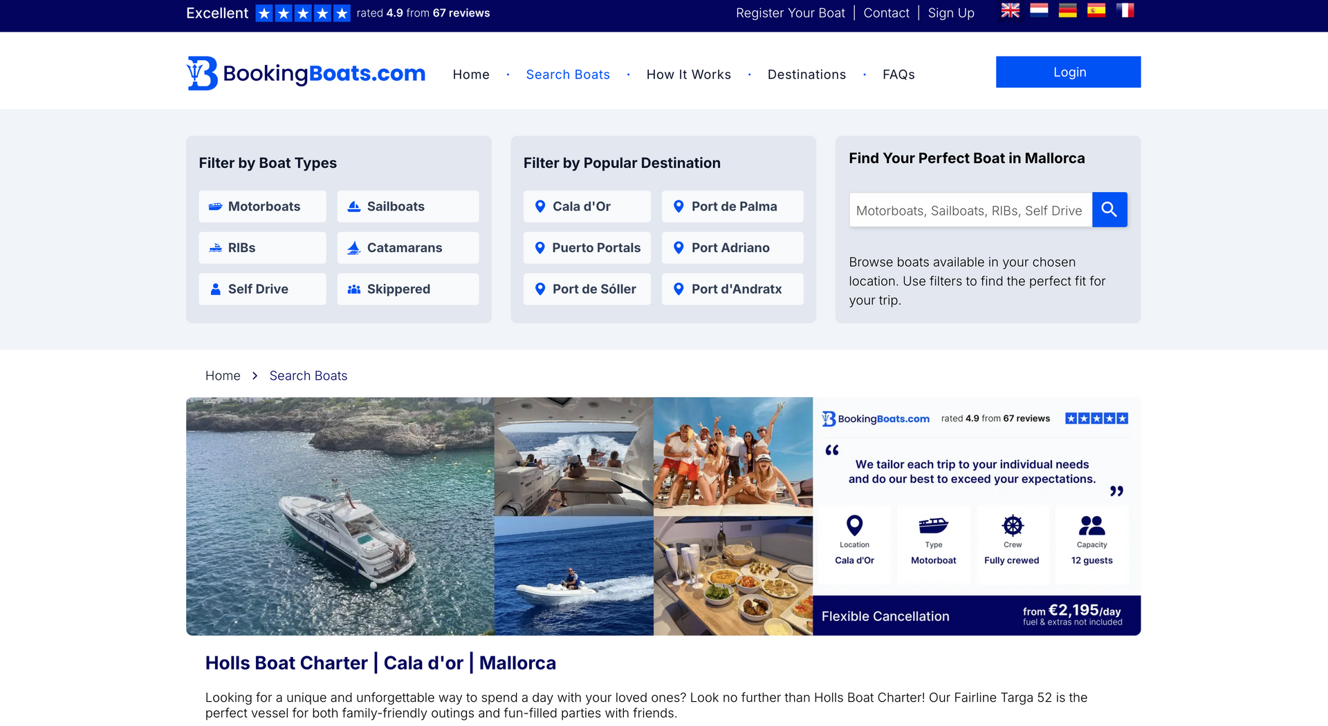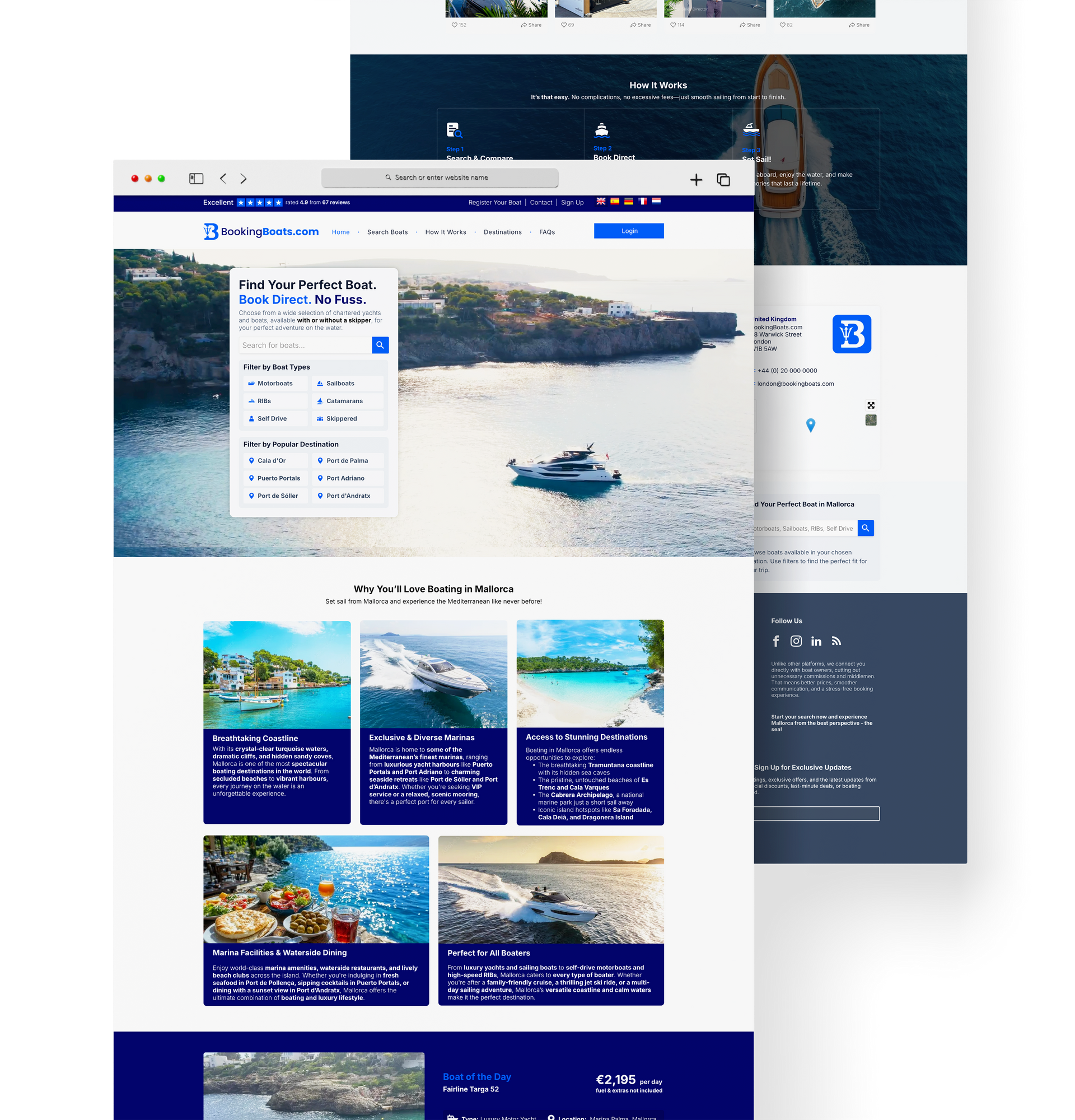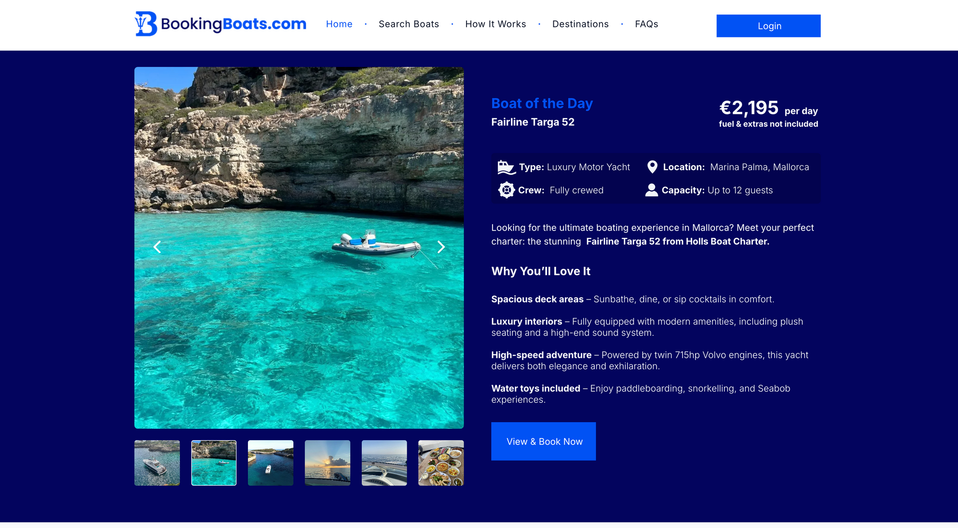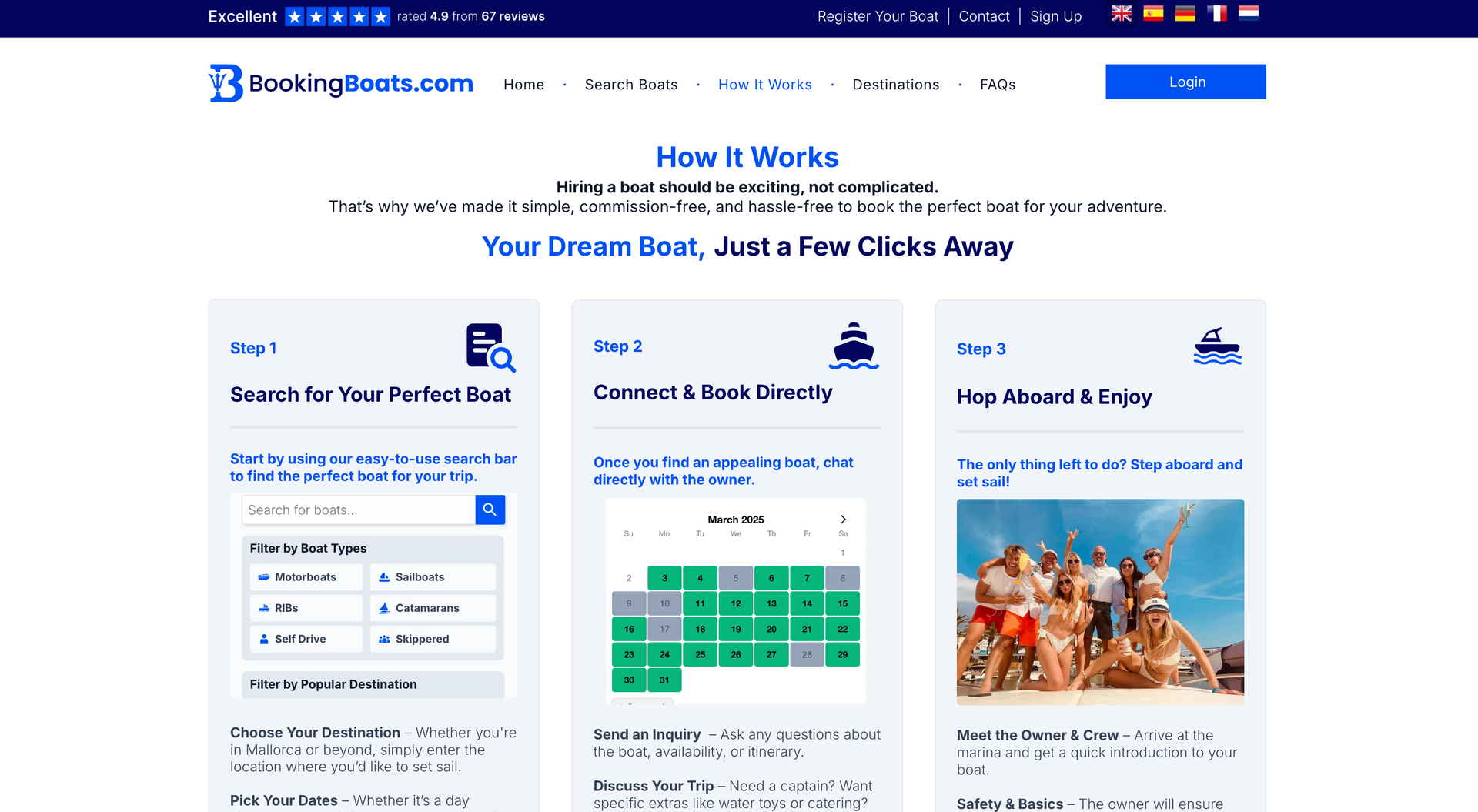 Booking boats has never been easier, BookingBoats allows you to effortlessly book your boat, add any extras and just hop aboard. Whether you want an adventurous self-drive day or to relax in the sun with a trusted captain in charge and catering in progress, BookingBoats has the right option for you. An easy booking system has been implemented which allows the customer to add any extras/ requirements/ questions all in one place creating a straightforward experience on both ends.