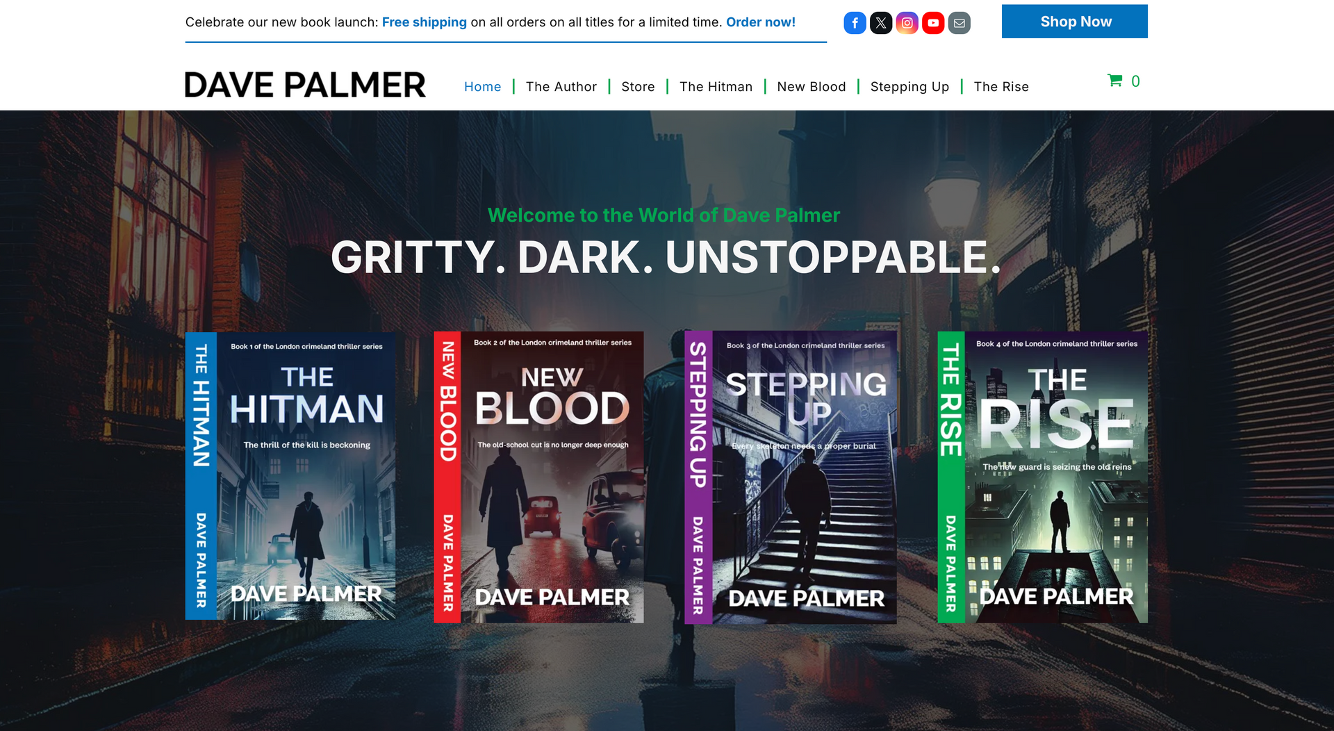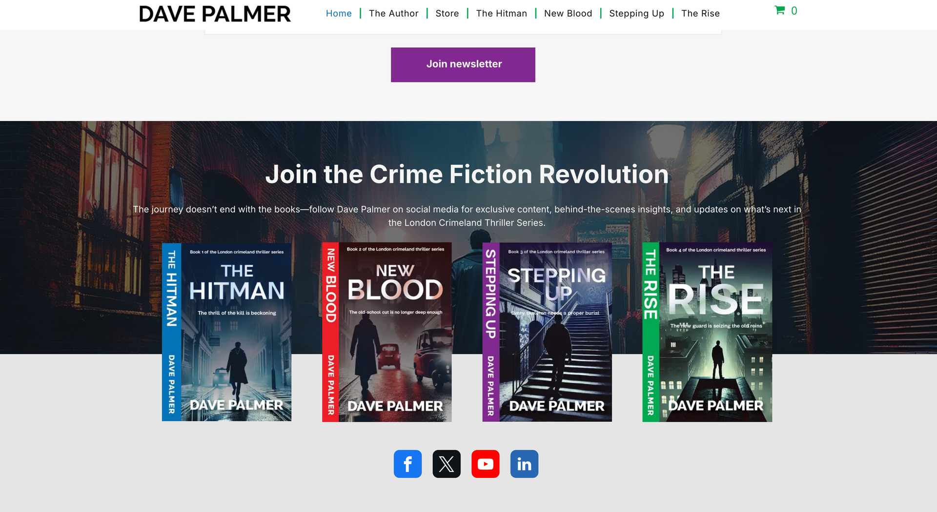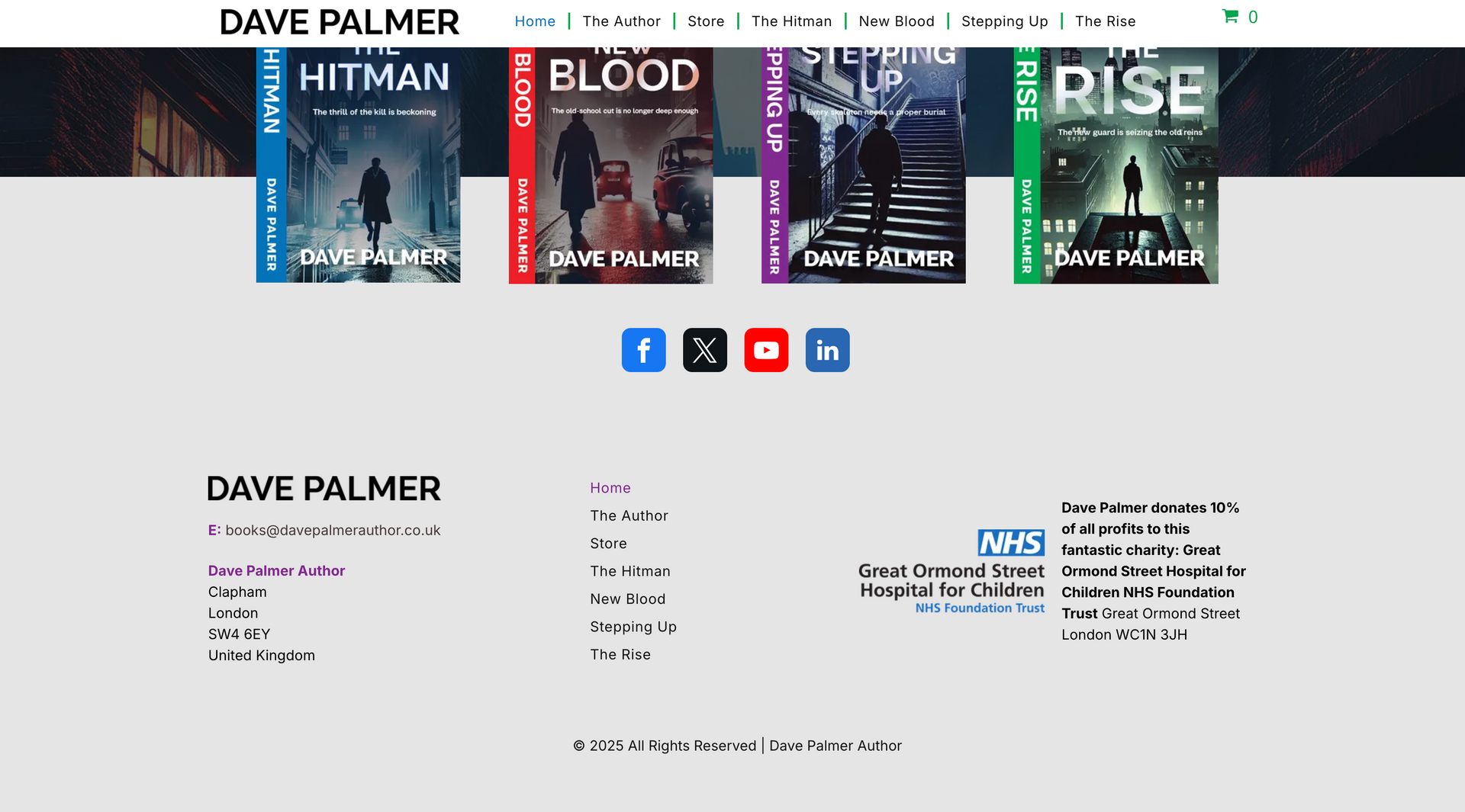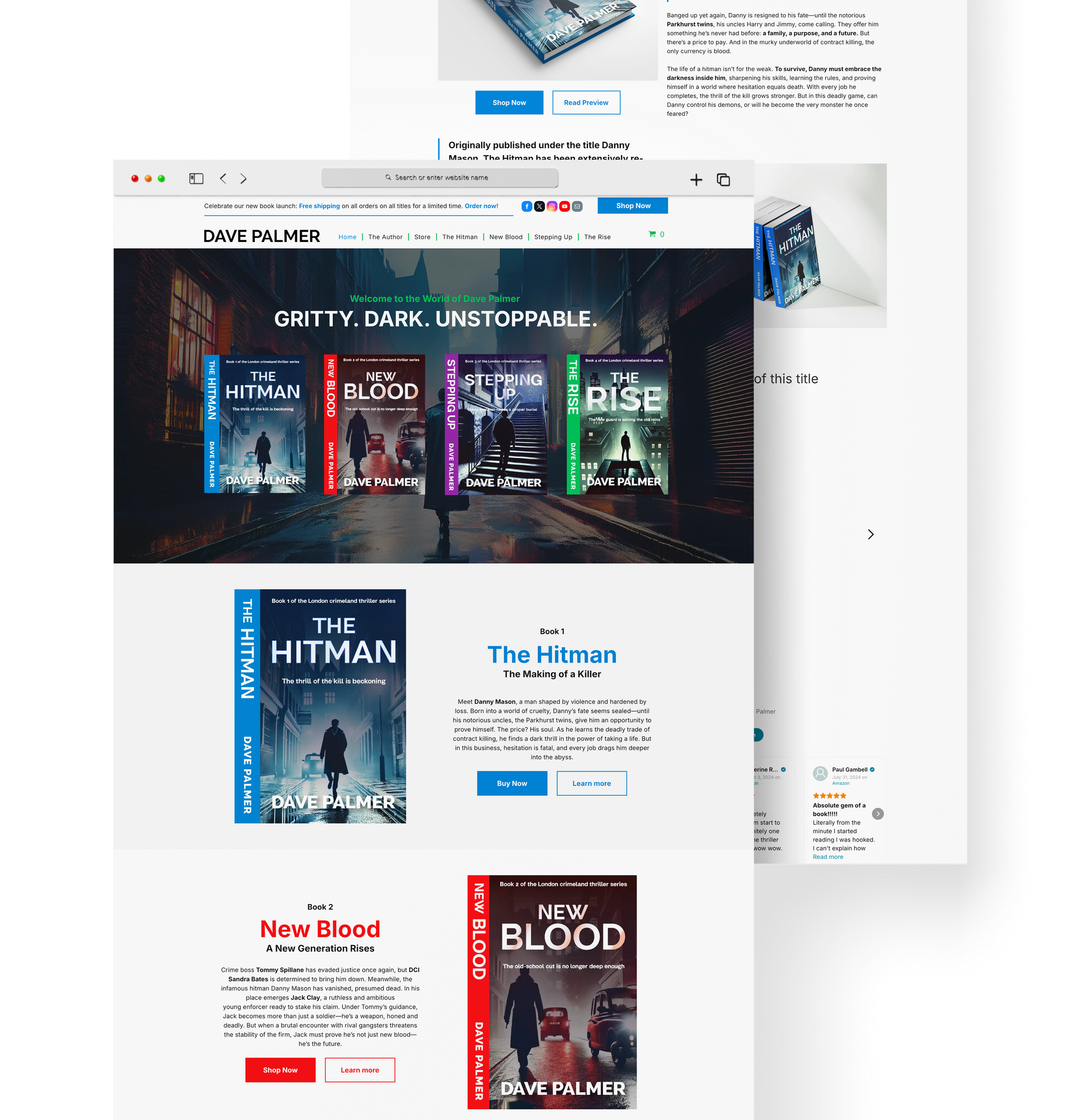 With the client, we worked through the purpose of the website and what it would be used for. Firstly we needed to introduce the author, give an insight into the person behind the books which would aid in driving the second purpose, book sales. To do this, we created different navigation pages, each with their purpose and aimed to seamlessly knit the author to the books, driving purchases directly available through the website.