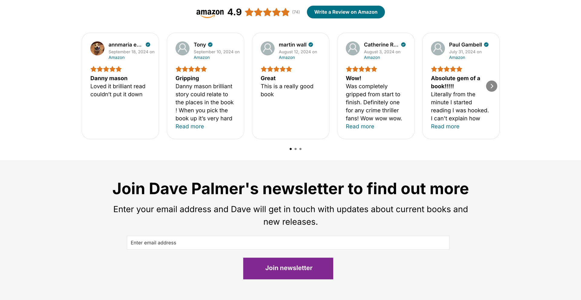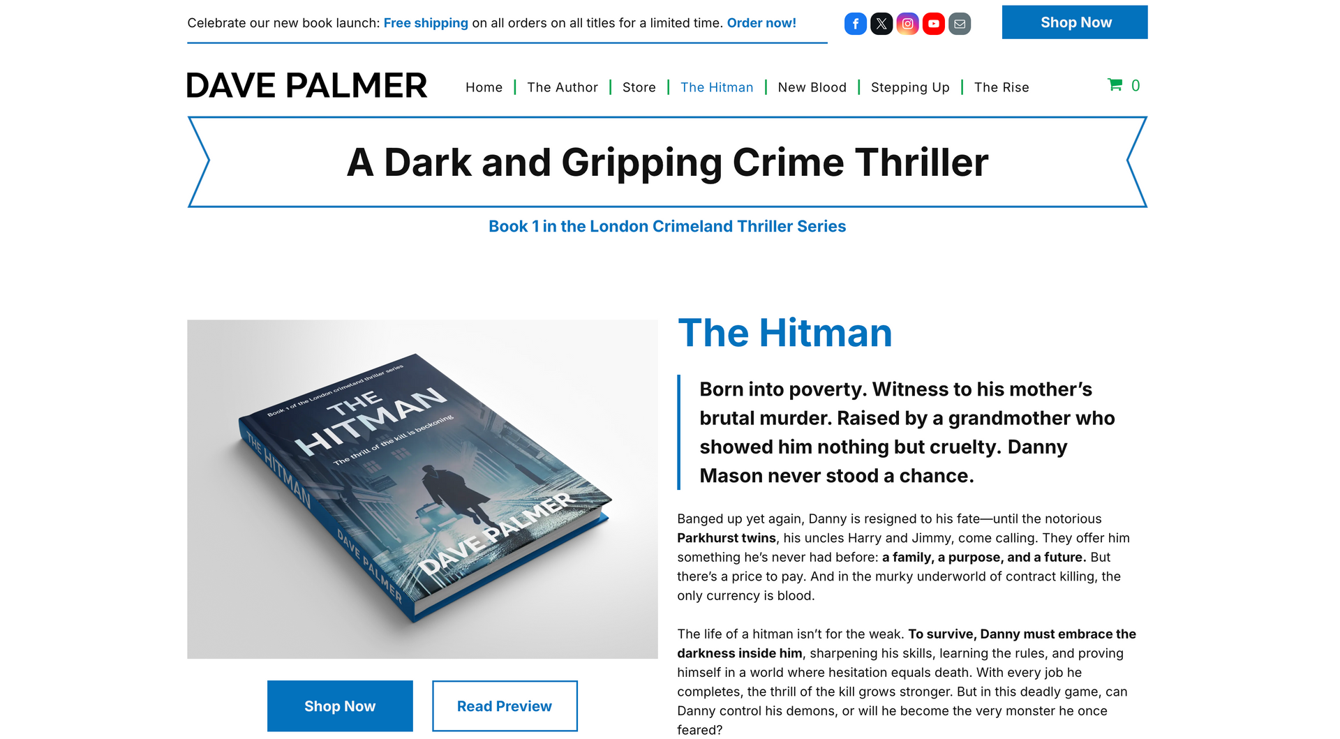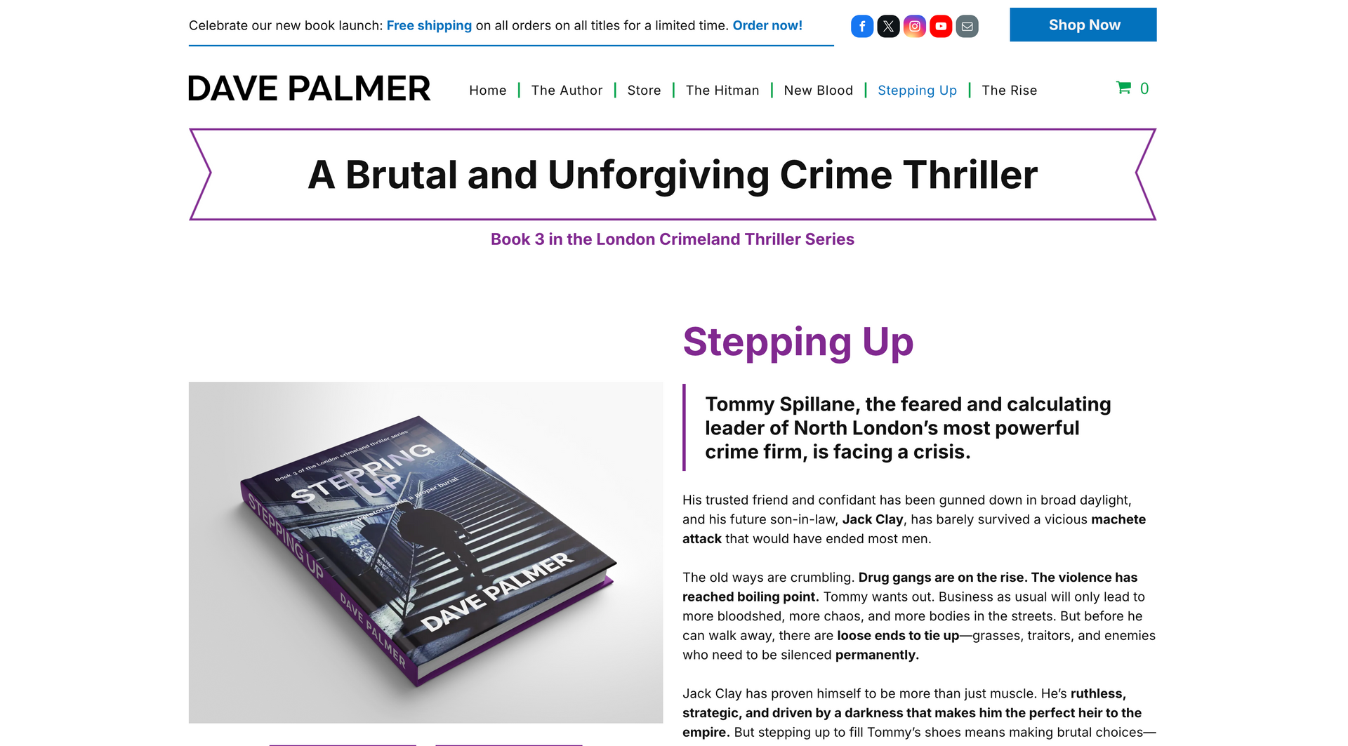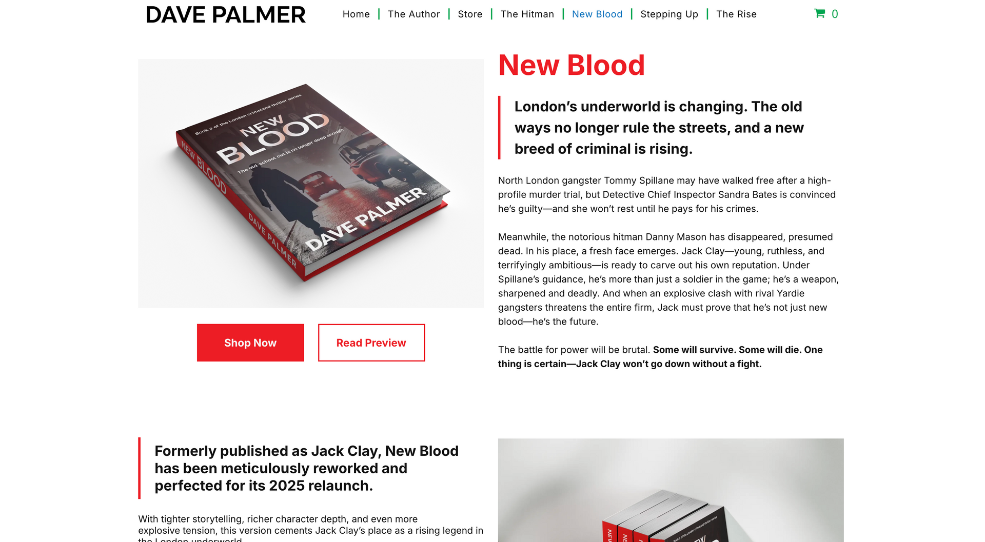 With the client, we worked through the purpose of the website and what it would be used for. Firstly we needed to introduce the author, give an insight into the person behind the books which would aid in driving the second purpose, book sales. To do this, we created different navigation pages, each with their purpose and aimed to seamlessly knit the author to the books, driving purchases directly available through the website.