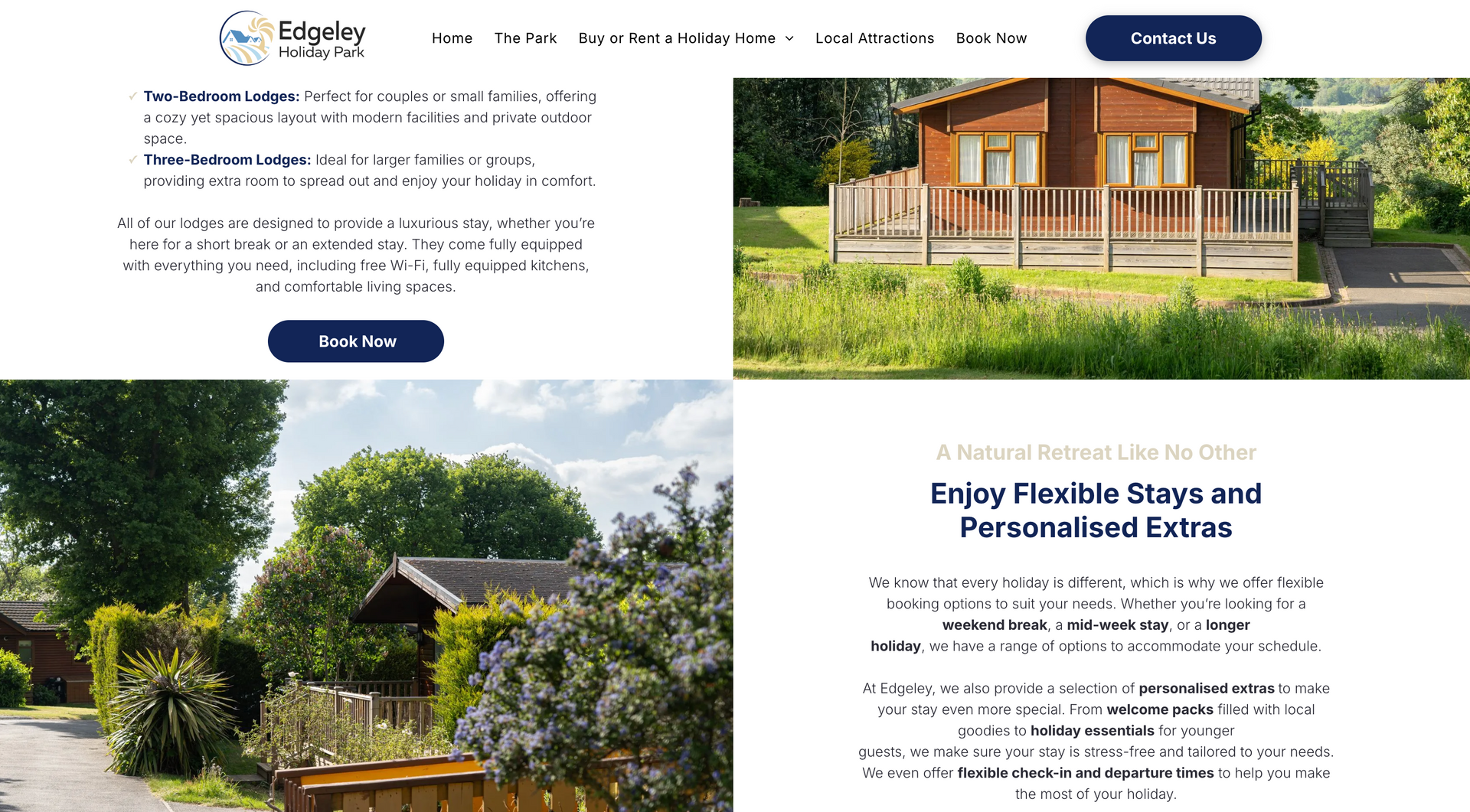 Edgeley Holiday Park offers beautiful holiday lodges to rent or buy. Equipped with a heated indoor pool, sauna & steam rooms, on-site restaurants and shop, Edgeley Park brings the convenience of the city to the calmness of the countryside. Using a blend of drone video footage and high quality images, we have been able to showcase the lodges and the stunning scenery surrounding the park.