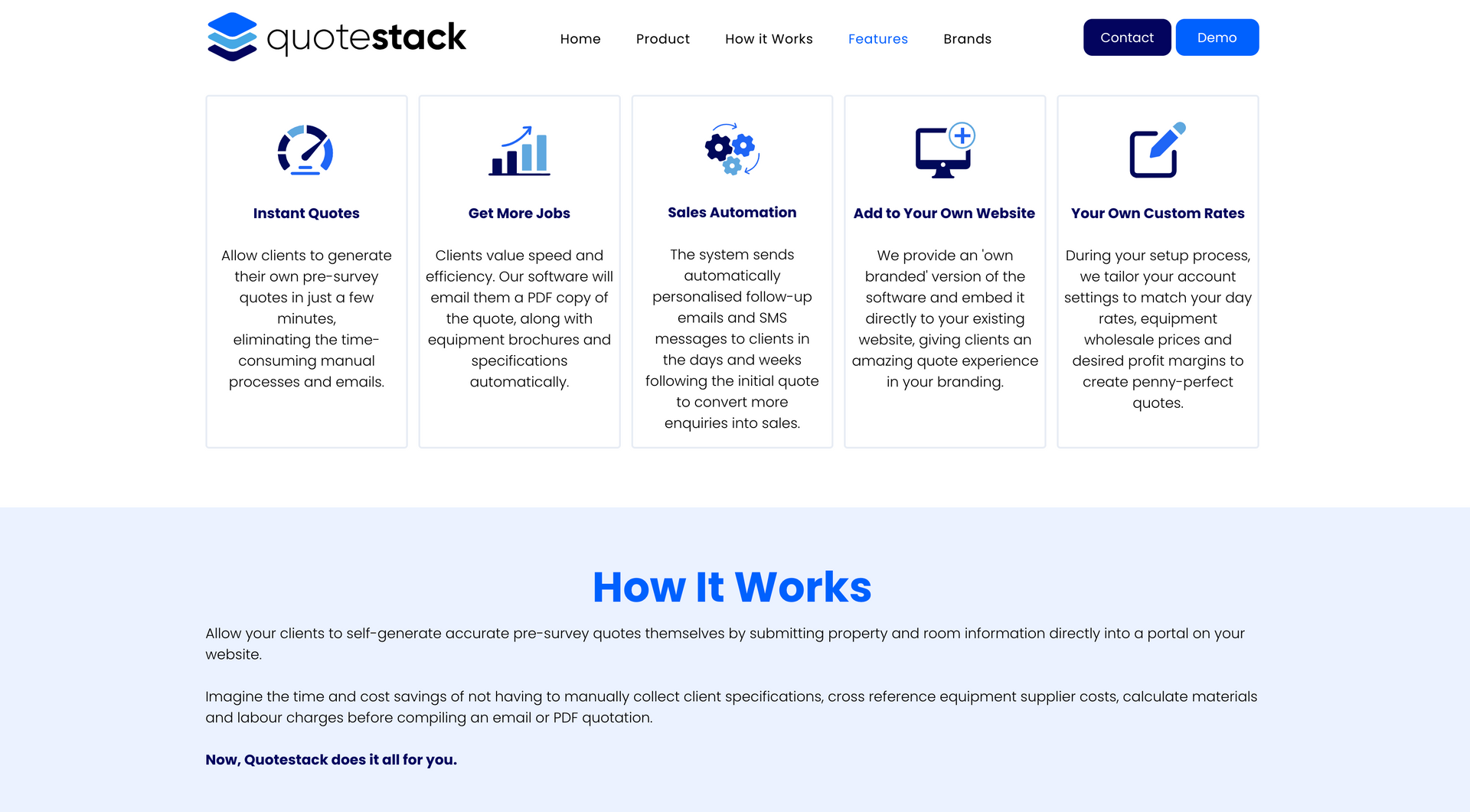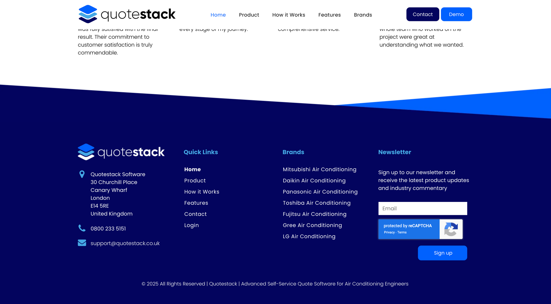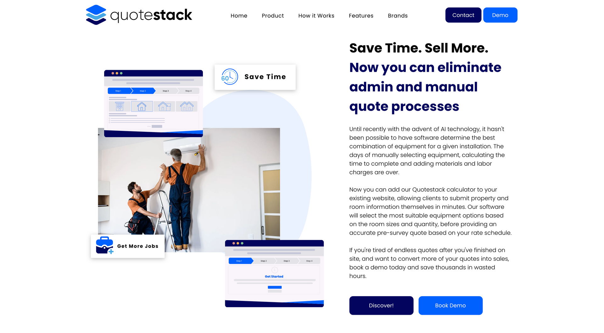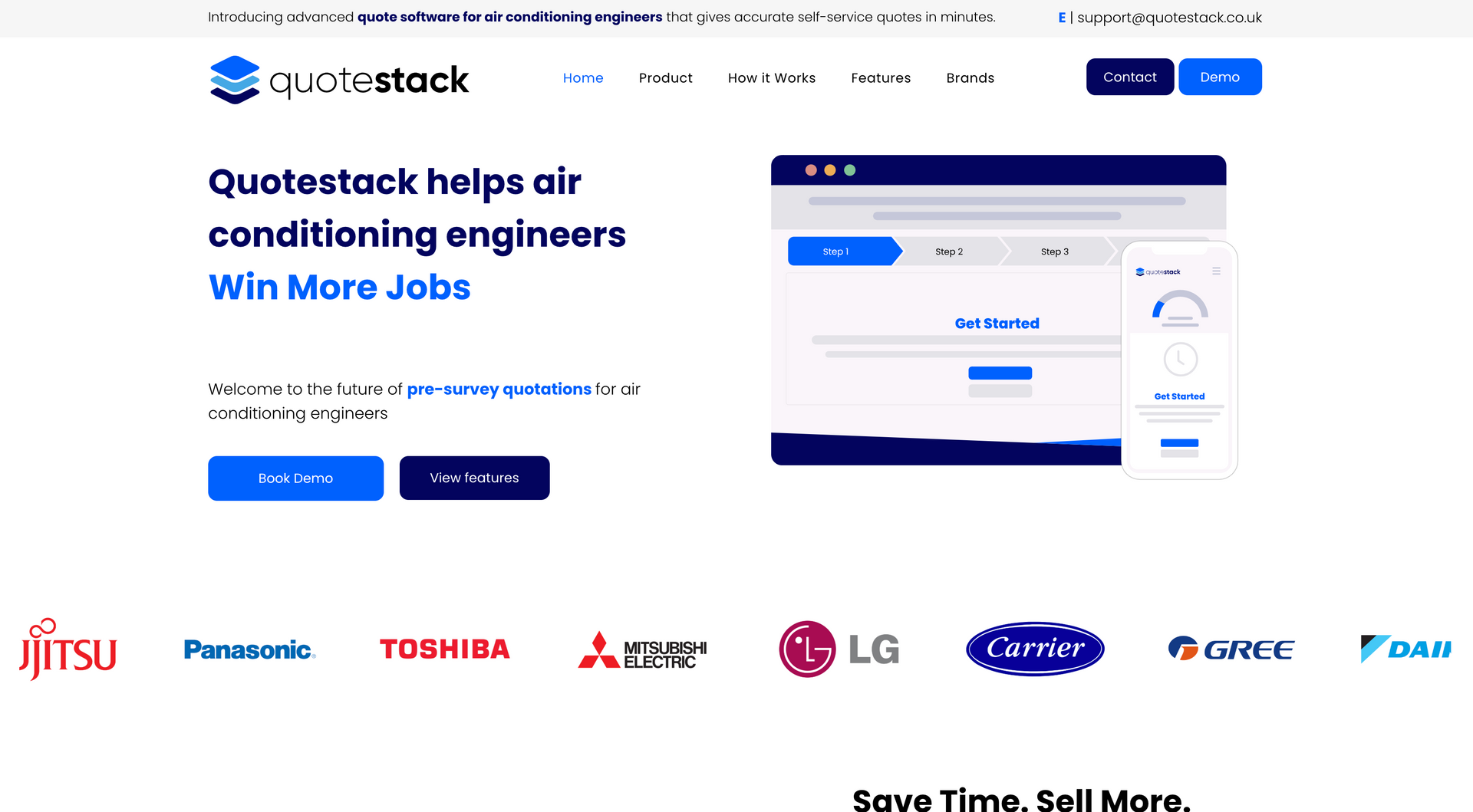 ‘Quote Stack helps air conditioning engineers make more money” - the Qoute stack calculator has been designed using AI to calculate the most efficient and cost effective solutions to air conditioning for a specific property and client. The product here is the calculator, which can be purchased by air conditioning firms and used on their website, allowing the customer to input information and calculating the best possible route and cost of installation, passing this information on to the company. Communicating these steps and the benefits to the client in a clear and concise way was essential for the brand. This was carried out with a step by step guide, uninterrupted by cluttered widgets and pop ups.