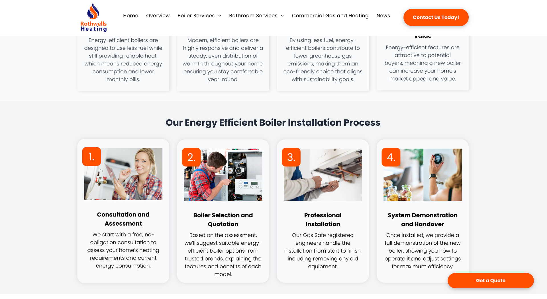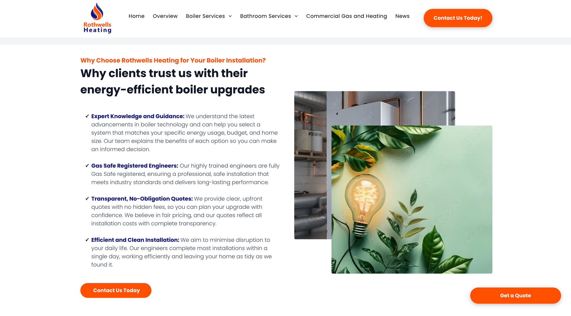 Rothwells Heating supplies gas boilers and energy efficient heating systems to homes and businesses. With a mission to provide every client with reliable, efficient and beautifully crafted systems, Rothwells Heating provides not only boilers but bathroom upgrades, refreshes and installations - all energy efficient, modern and reliable. Call out services are also available by Rothwells for bathrooms and boilers. Rated Google Reviews were used to verify the service and staff at Rothwells to potential customers.