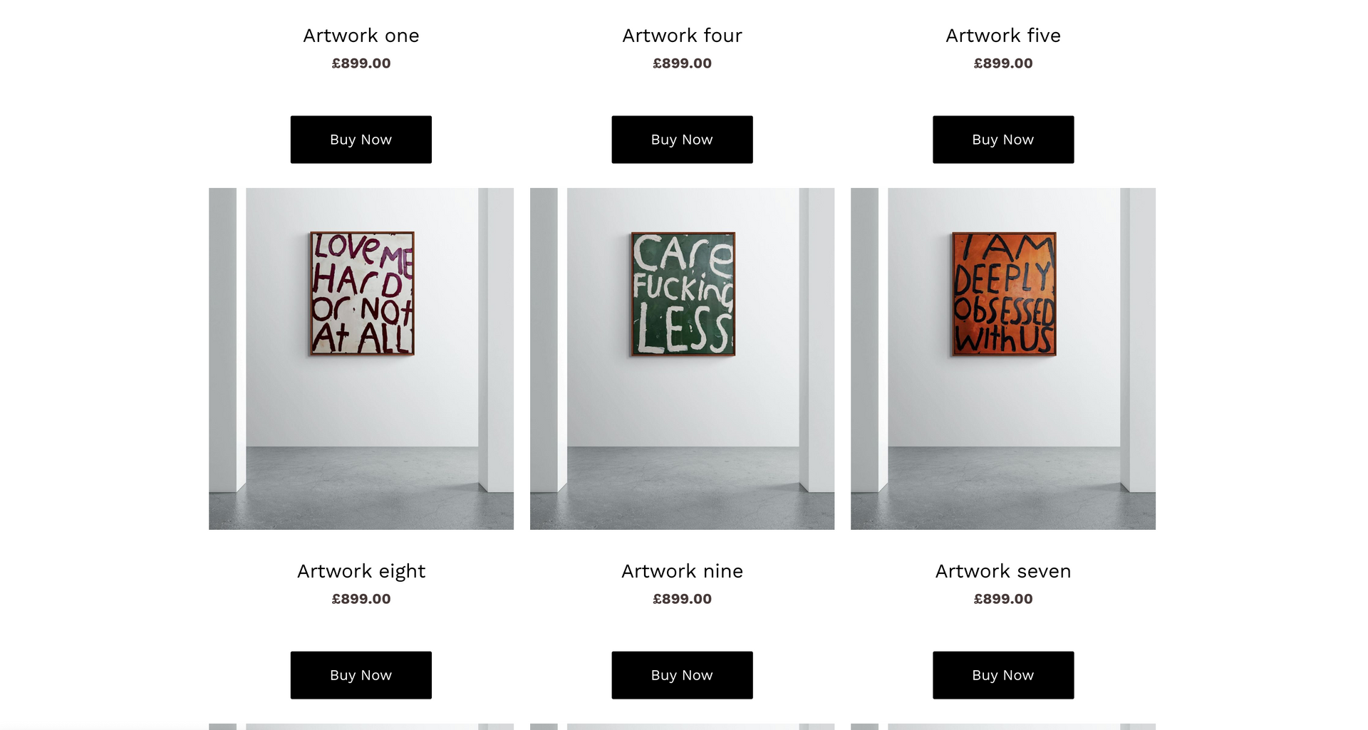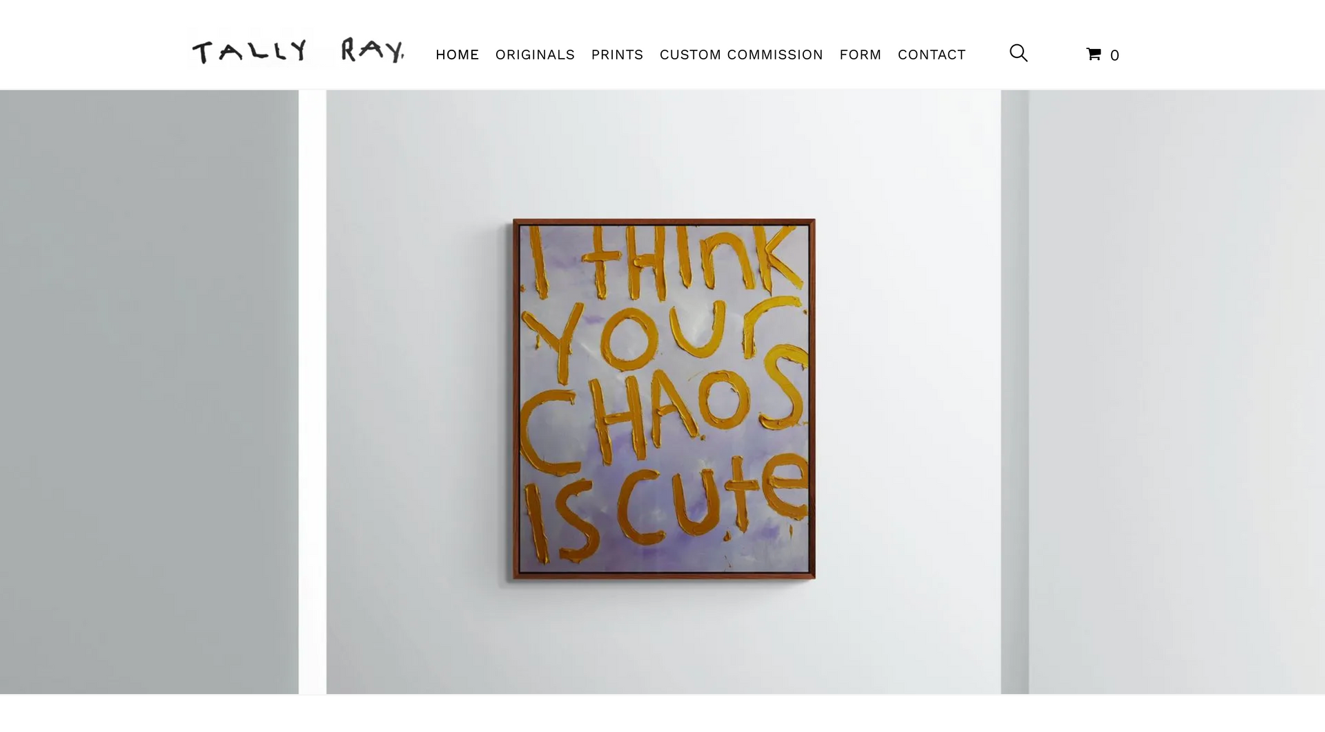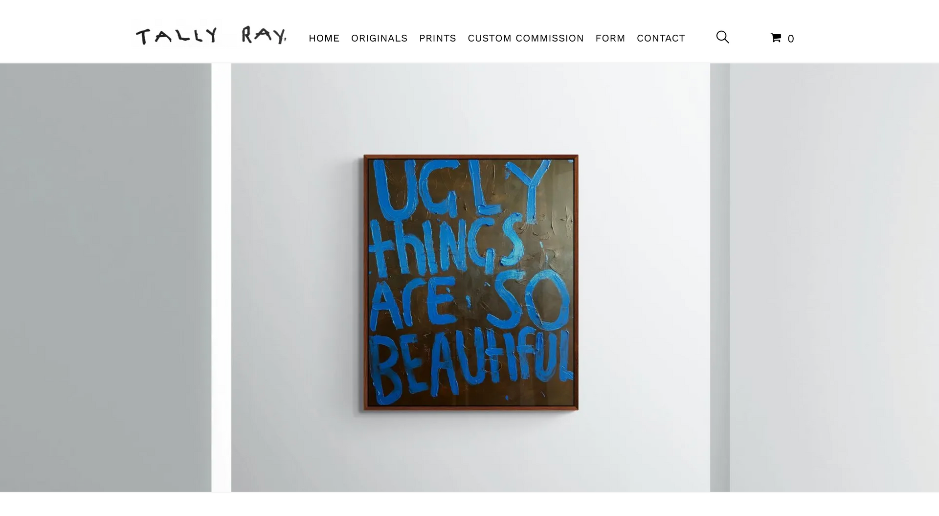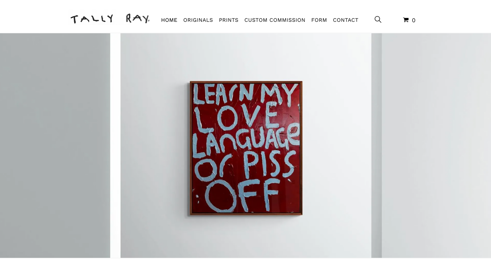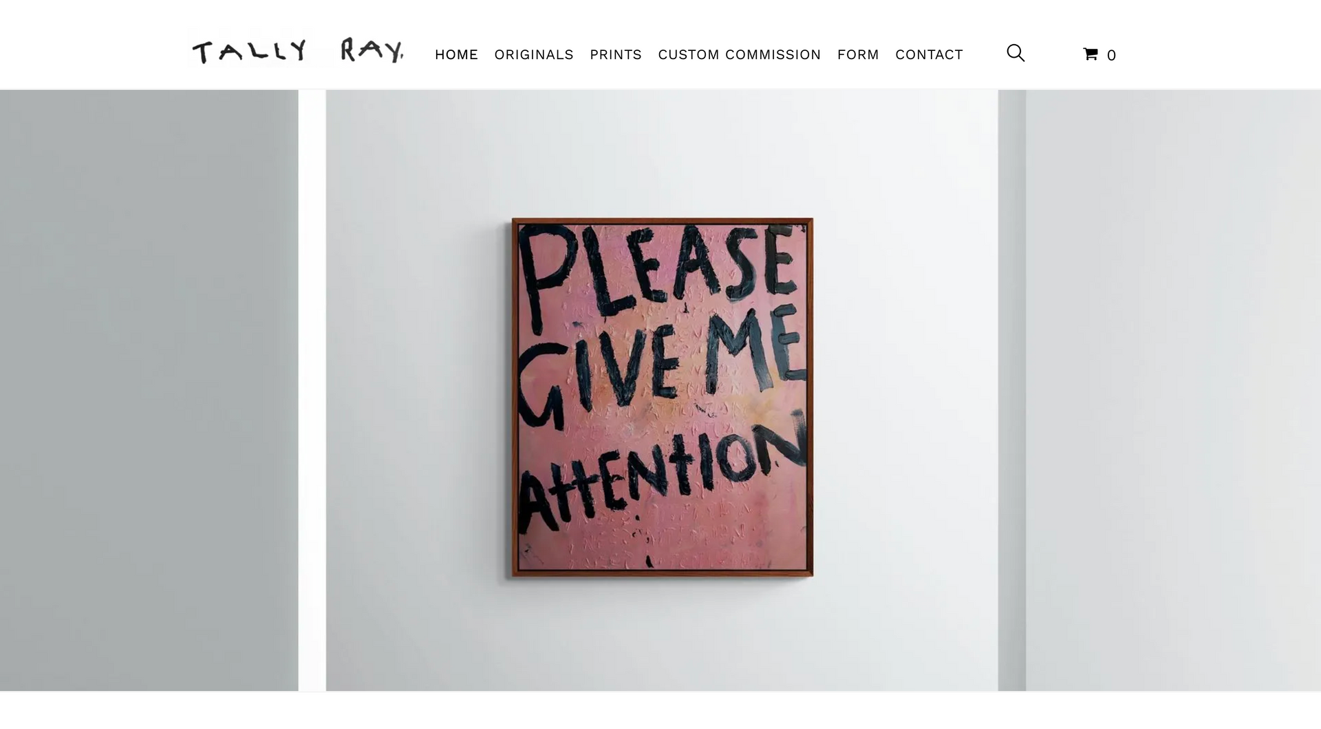 Tally Ray is an emerging artist specializing in contextual word art. Creating a website centred around art means being completely image orientated. This starts with creating a page which is image-centric: clean white background paired with minimalist font and text allows the art to speak for itself.